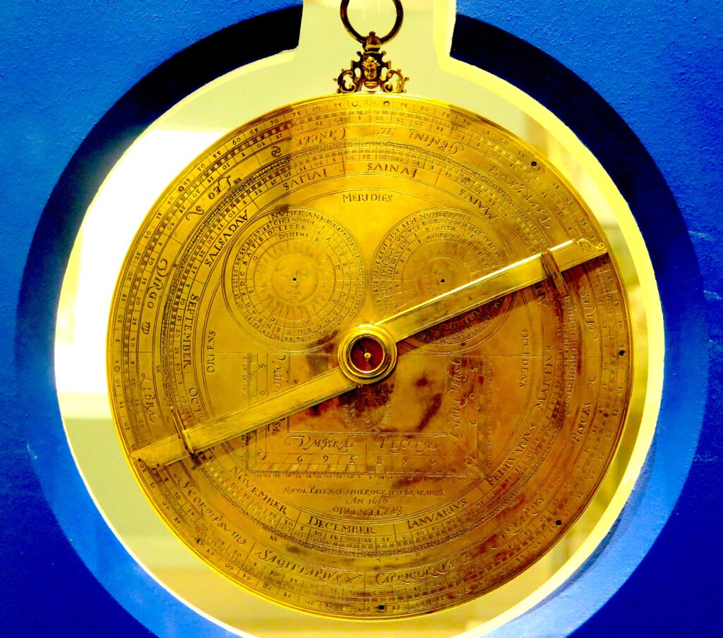 Admiring the elegant but mysterious (to me, anyway) curves on the sundial, I was reminded of the navigational tools at a Portuguese naval museum I visited a few months before.