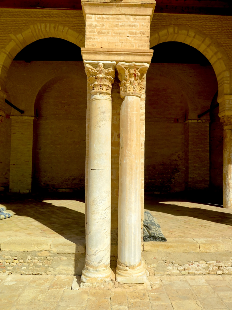 I commented on this to Yassine, who told me that many of the columns were indeed brought from other ancient sites in the country, including Carthage. I loved standing in the middle of the courtyard, admiring that the building—already one of the oldest places of Islamic worship—was itself a motley construction from even more ancient Roman, Byzantine, and Carthaginian buildings.